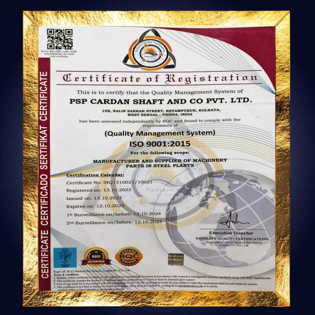 Our manufacturing processes are ISO 9001:2015 certified, ensuring consistent quality and reliability in every cardan shaft we produce.